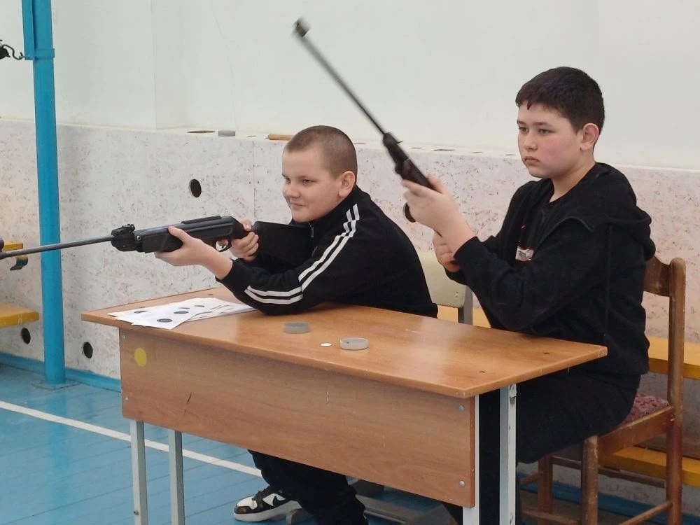 Соревнования по стрельбе 12 февраля 2026 В рамках месячника военно-патриотического воспитания состоялись соревнования по стрельбе из пневматической винтовки среди учащихся 5–9 классов. Мероприятие было направлено на популяризацию прикладных видов спорта и формирование у молодежи навыков обращения с оружием.Соревнования проходили в два этапа:Инструктаж: повторение правил техники безопасности.Практическая часть: стрельба по мишеням из положения сидя с опорой на локти.Ребята проявили железную выдержку и умение сохранять хладнокровие в самых напряженных моментах. Кто же стал лучшим? Узнаем совсем скоро — итоги Месячника будут объявлены сразу после завершения подсчета баллов.