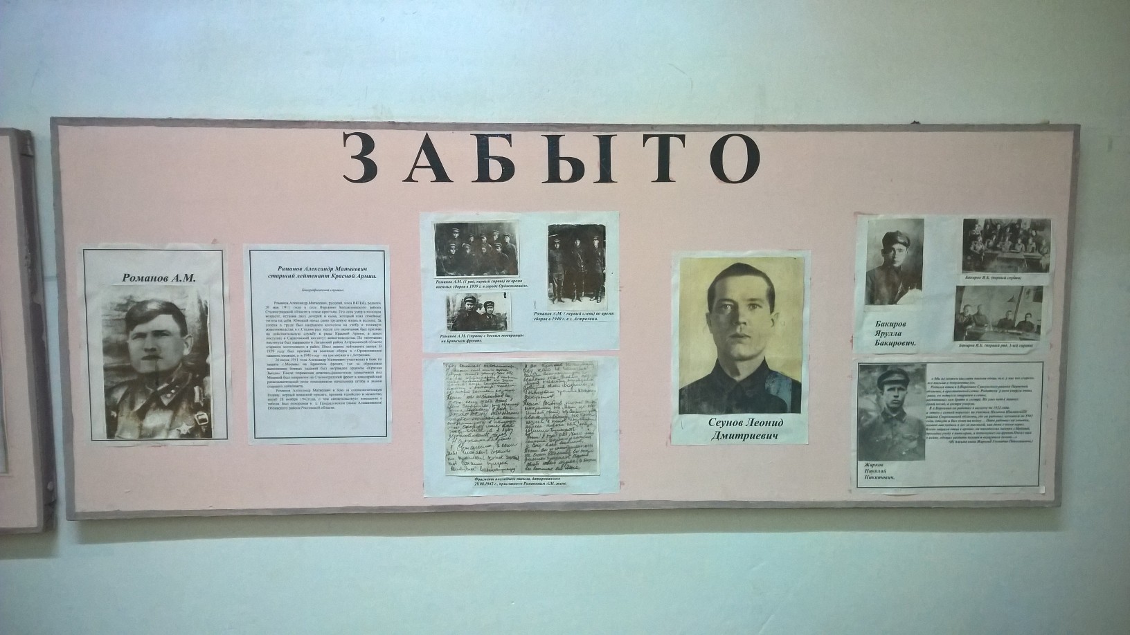 Школьный музей 08 июля 2024 Музей Боевой Славы был создан в школе в феврале 1987г., создан по инициативе учащихся и педагогов. Он стал результатом собственной поисково–собирательной и исследовательской деятельности. Здесь учащиеся хранят, изучают различные предметы и документы, представляющие историческую, научную и художественную ценность. Цель создания музея: Воспитать патриота неравнодушного к прошлому и настоящему своей Родины через деятельность школьного музея, содействовать повышению эффективности учебно-воспитательной работы. Задачи: • Формирование представления об историческом времени и пространстве, об изменчивости и преемственности системы социально-нравственных ценностей; • Формирование уважительного отношения к памятникам прошлого, потребности общаться с музейными ценностями; • Воспитание музейной культуры, обучение музейному языку, музейной терминологии; • Формирование научных и профессиональных интересов; • Привлечение к сотрудничеству сторонних организаций, ставящих перед собой сходные цели. Основные направления деятельности: Поисковая деятельность; Сбор материалов по истории Великой Отечественной Войны; Формирование фондов подлинных памятников истории Великой Отечественной Войны; Научно-исследовательская деятельность; Обеспечение учета и условий сохранности фондов школьного музея. Экспозиция уголка разместилась на 4 стендах и прилегающей к ним витрине, в которой расположено более 20 экспонатов, среди которых награды и медали: «За боевые заслуги», «За оборону Кавказа», «За отвагу», , личные вещи участников Великой Отечественной войны, фотографии тех, кто ценою своей жизни отстоял нашу Родину. Руководителем УГОЛКА БОЕВОЙ СЛАВЫ является учитель истории Псел Виктор Иванович.